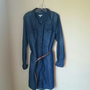 Jean like materialed dress XL, merona. Wirh brown belt that it came with. Both belt loops are intact.