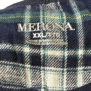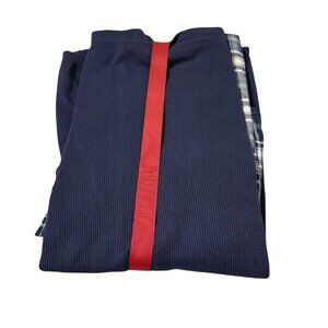 Merona XXL Men’s Pajama Set Navy Henley Shirt Multicolor Plaid Pant 100% Cotton