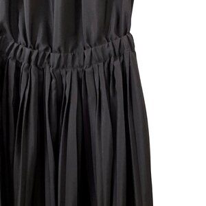 A black sundress with a ruched pleated skirt. Labeled a women's size XS.