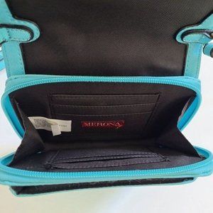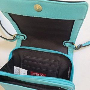 Preowned Meroma Shoulder Handbag Clutch ,cross-body carrying bag , gold hardware.