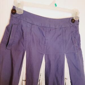 Merona blue and white nautical boat print pleated knee length skirt sz 2 preppy