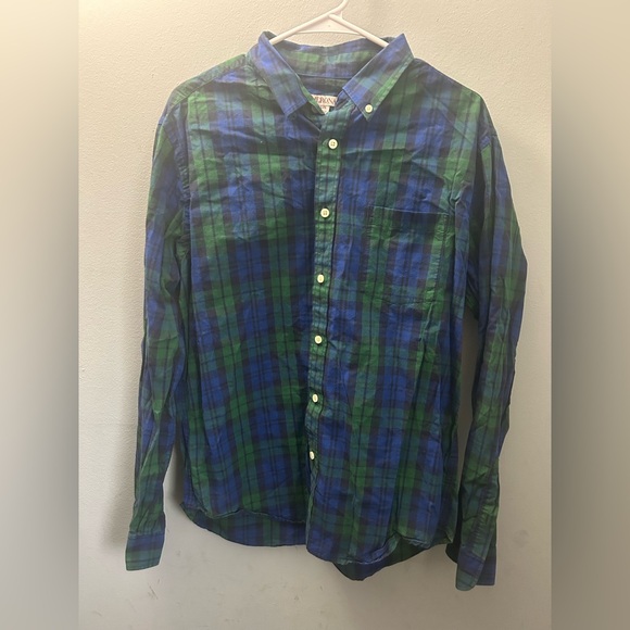 Size large plaid navy blue/dark green button down from Merona.