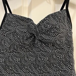Merona NWT ladies swim top in size Medium. Shell is made of 82% nylon & 18% spandex. Lining is 100% polyester.