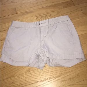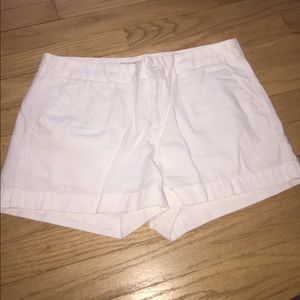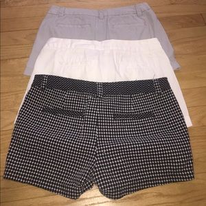 3 pairs of Merona shorts..grey, white and black/white. Size 4. 100% cotton. White pair has small stain on back right leg (as shown in picture)..could possibly be bleached.