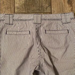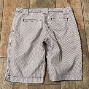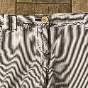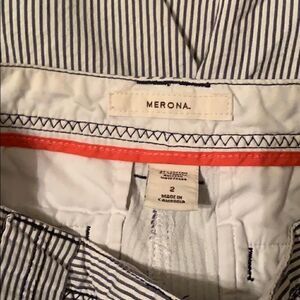 Merona shorts. White shorts with blue stripes going down.Size 2, two front pockets with belt loops. From top to bottom 18”. Preloved from smoke and animal free home.