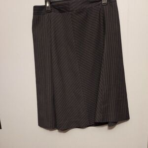Woman's skirt grey with light grey stripes has a hidden zipper in back