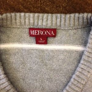 A soft gray Merona sweater. 100% cotton. 22 1/2 inches wide, 26 inches in length. Size L. One of those sweaters you want to cuddle up to.