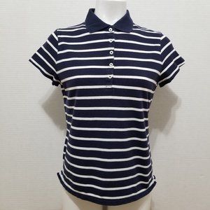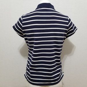 Merona top Small Ultimate Polo Breton striped nautical short sleeve side split
