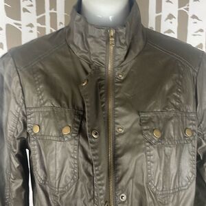 Fit: Inverted pleats on shoulder for a slight puff sleeve, hidden zip with snap close panel, fully functional double snap close chest/front hip pockets, snap close cuffs, fully lined