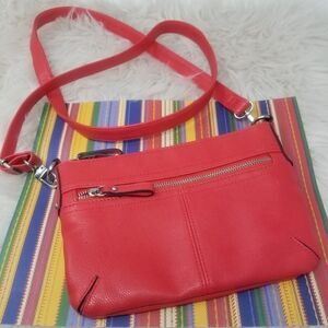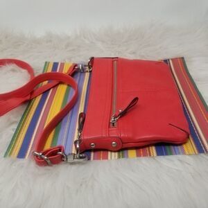 Very good condition faux leather Merona orange crossbody bag. Approximate measurements are 9" x 6". Strap is approximately 51" and is fully adjustable and removable.