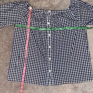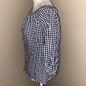 Merona Navy White Off the Shoulder Gingham Cotton Pullover 3/4 Sleeve Top!