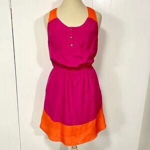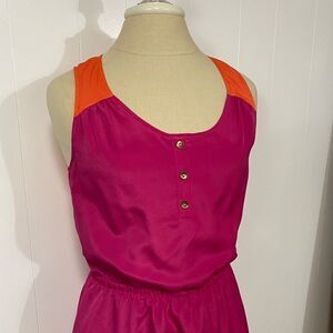 Lightweight color block dress with pockets. Had belt loops at some point, since removed, see photos.