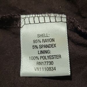 V neckline. 95% rayon, 5% spandex 17" pit to pit 14" waist 37" total length