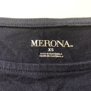 Merona size XS striped boat neck top Navy and white 3/4 length sleeves Lay flat pit to pit 15” Length 23” C3
