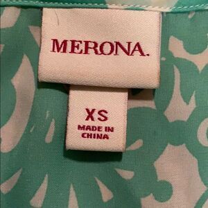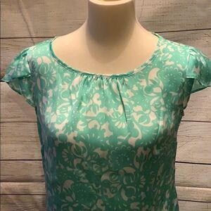 Merona small short sleeve blouse. Color is sea foam green with white colors. Preloved in good condition. No flaws. From a smoke free home.