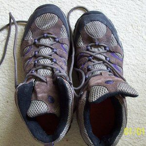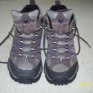 Merrel Women's Moab 3 Mid Hiking Boots. Used only once at Arches NP. Brown with purple inlays. Smoke free, pet free home.