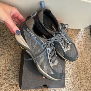 Women’s Merrell in a size 10, generously worn but still in the box. Smoke free home.