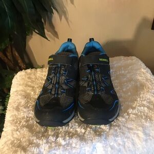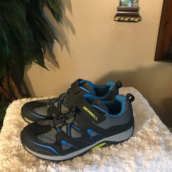 Mens merrell hiking shoes in gray black blue size 6 gently used