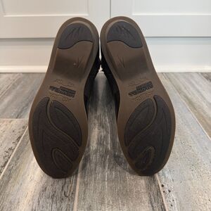 These boots by Merrell are very comfortable and perfect for everyday outerwear. They are a combination of leather and fabric making them stylish and perfect for the outdoors. They are some creases and a little wear on the toe box as shown in picture.