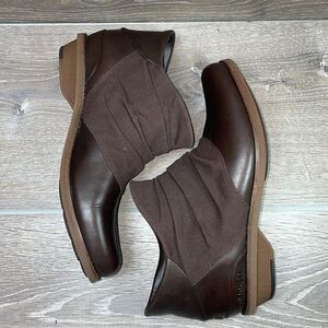 Merrell Adaline Bracken Leather Canvas Women’s Sz 8 Slip On Split Toe Ankle Boots in terrific condition. Great tread and gorgeous brown leather canvas. Slip on for easy on and off. Get these beautiful slouch ankle boots today ladies.