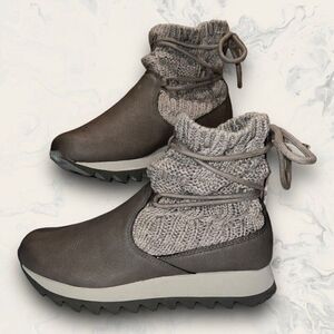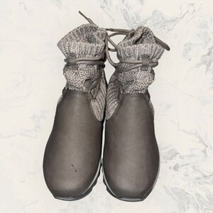 Merrell Alpine Pull On Brindle Gray Vegan Leather Knit Boots Womens Size 7.5