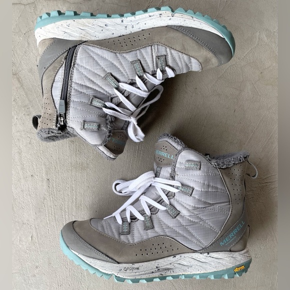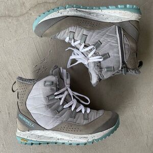 You will stay confident amidst the elements in the Merrell Antora sneaker boot. Designed with durable nylon, this waterproof weather boot comes with a lightweight and rebounding EVA midsole, and a trail-running Vibram rubber sole for superior grip.