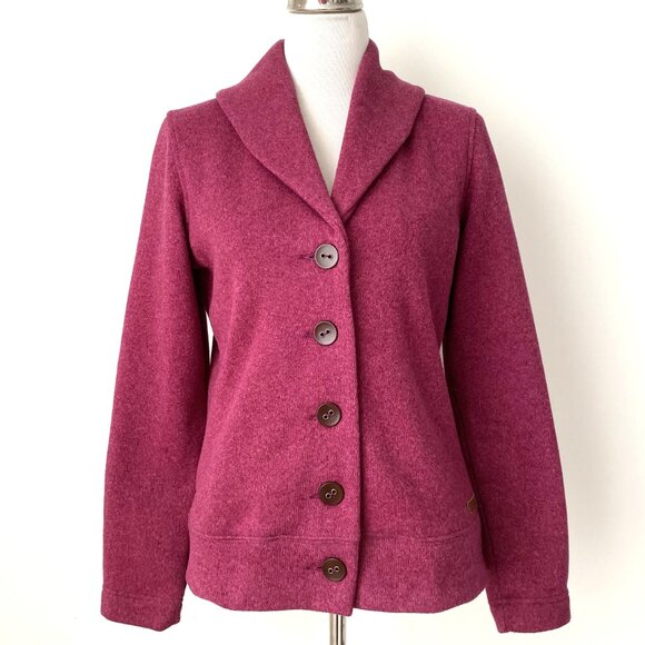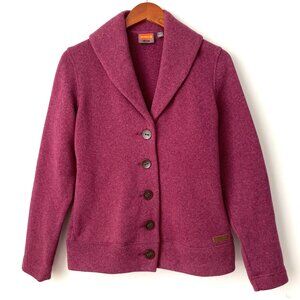 Merrell | Arabella Button Front Cardigan Sweater in size S. Raspberry color. Nice and warm. Side pocket with zipper. Excellent pre-owned condition. No flaws.