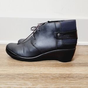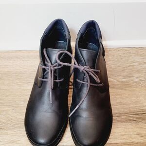 Merrell Black Veranda Butter Rum Leather Mock Clog Ankle Boot Size 8.5 Lace Up