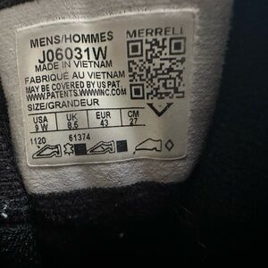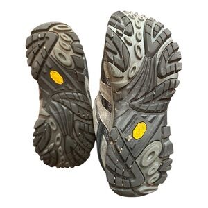 Merrell trail shoes with sturdy grip. Black and gray color scheme. Ideal for outdoor adventures. Worn a handful of times. Great shape!