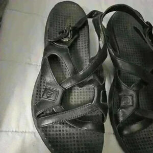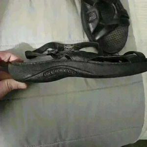 Merrell Black strappy sandals. these sandals a practically new. hardly any signs of wear. adjustable buckle.