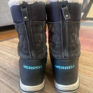 Size 6 Merrell boots. Laces and back zipper. Some wear on heels, shown in pictures. Leather uppers, waterproof.