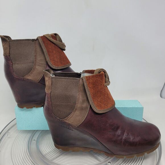 Merrell Boots Burgundy Leather Shoes Hidden Wedge Womens sz 7.5 Cinnamon J48714