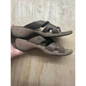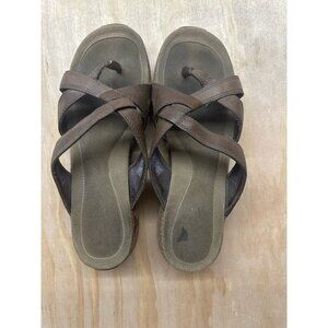 Merrell Brown Leather Wedge Thong Slip On Sandals Air Cushion Comfortable 9