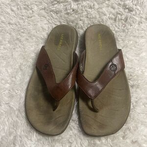 Merrell Brown Leather Men's thong Sandals Rubber soles size 10