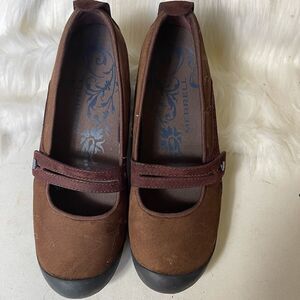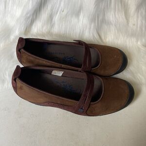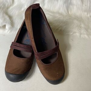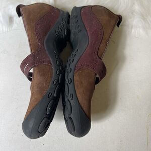 Merrell Brown/Burgundy suede Mary Jane comfort flats size 10.