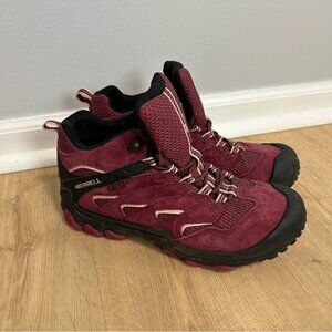 Merrell Chameleon 7 Limit Mid Waterproof Maroon Red Outdoor Hiking Boots 9.5