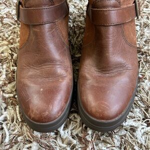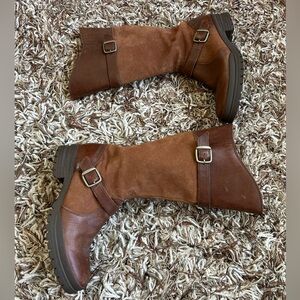 EUC pair of City Leaf boots from Merrell in a size 8. These boots are in a beautiful brown color with a zipper closure on the inside of the leg. Small heel. No stains or flaws!