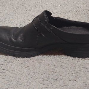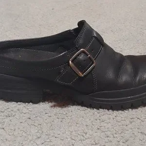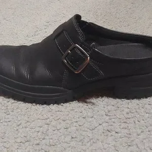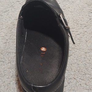 Merrell City Leaf Clogs black with buckle accent, slide on, size 8