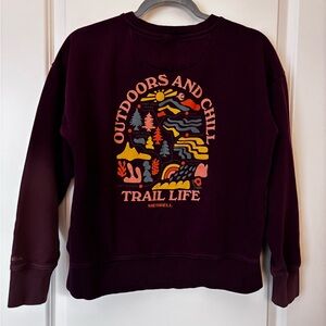 Midweight fabric for everyday wear. Chest graphic features bright orange and yellow sunset design. Ribbed cuffs and hem.