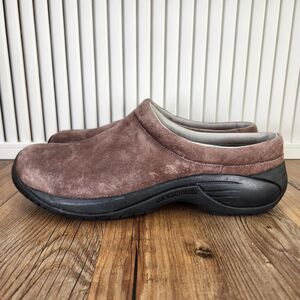 Merrell Encore Chill Espresso Mens Sz 9.5 Brown Suede Slip On Clogs Shoes J49711