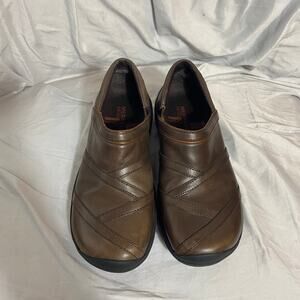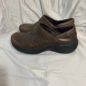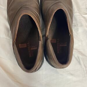 Merrell Encore Eclipse Brown Leather Clog Loafer 7 Comfort Ortholite Work Nurse