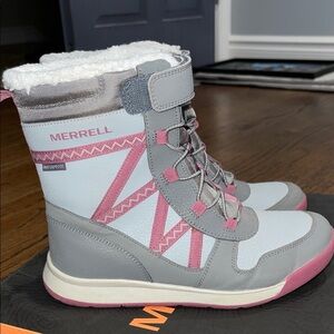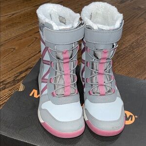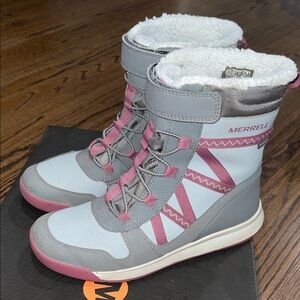 Merrell Gray and Pink Snow Crush 2.0 Waterproof Boots - Kids size 4 EUC