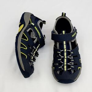 Durable and stylish, these Merrell kids' sandals feature a vibrant blue and yellow design. Perfect for active play.