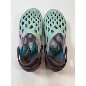Lightweight Merrell Hydro Mocs with contoured EVA foam for comfort. Water-resistant, breathable design features durable strap closures and perforated build for easy drainage and all-terrain wear.