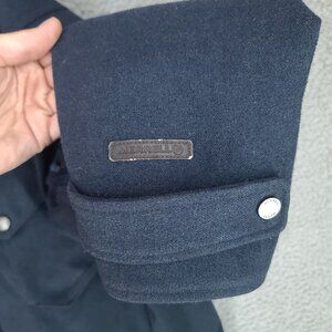 Condition is pre-owned. The only flaws is a small stain by one of the cuffs, some on the inside lining on the bottom, and some darkening on the upper back as seen in the pictures. Shipped with usps ground advantage