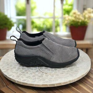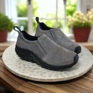 Tags/Keywords: merrell jungle moc, j71447, grey suede shoes, men’s slip-on, castlerock, comfort shoes, casual walking shoes, outdoor slip on, clog style, merrell men 7.5, travel shoe, suede moc