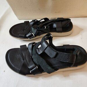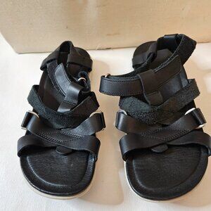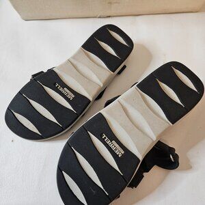 Merrell Kalari Shaw Strap Sandals are slip-on sandals with a strappy design and D-ring hardware. They feature a leather upper, leather-wrapped contoured footbed with COMFORTBASE Active technology, a cushioned EVA midsole, and an M Select Grip rubber outsole.
