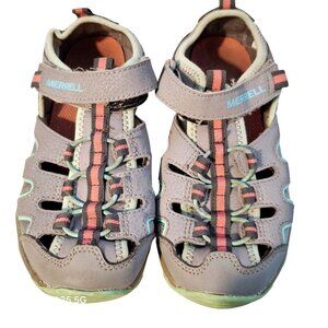 Merrell Kids Closed-Toe Sandals Size 2M Gray & Mint Green Leather/Textile Uppers
