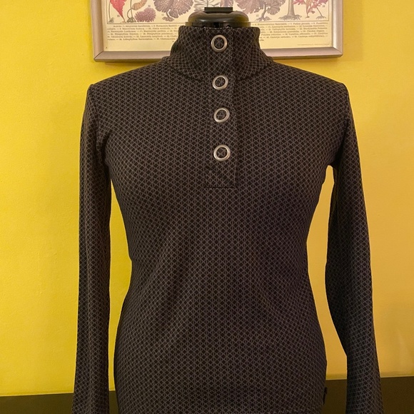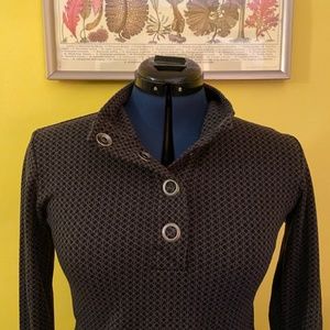 Grey/ black Merrell pullover with oversized snaps. Excellent quality. I adore this sweater, it’s just too small for me now.