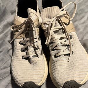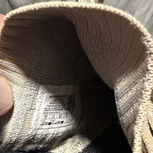 Light tan sneakers with ribbed texture. Lace-up design. Comfortable and stylish.